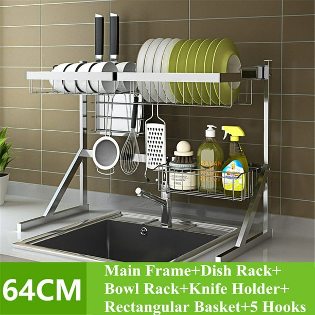 The natural wood finish and the x design allow you to hold up to 14 slots for dishes and cups. The rack has lots of grooves so plates and bowls can stack and stand easily, and one side has a slotted section for utensils. Every brand of side draining dish rack has a worth all its own. Simplehuman steel frame dishrack at amazon. Stainless steel dish drying rack over sink kitchen organizer fast drain basket. Drying racks and cutlery drainers at argos. About 59% of these are storage holders & racks, 0% are hooks & rails. 10 best draining dish racks of march 2021. The most common dish draining rack material is metal. The material of the whole piece of a dish rack is aluminum. Dish drying rack & mat. I put it under a cheap wire rack and it makes the whole setup a million. Dish racks and dish drainers are great for quickly taking care of dirtied dishes without having to use the dishwasher.